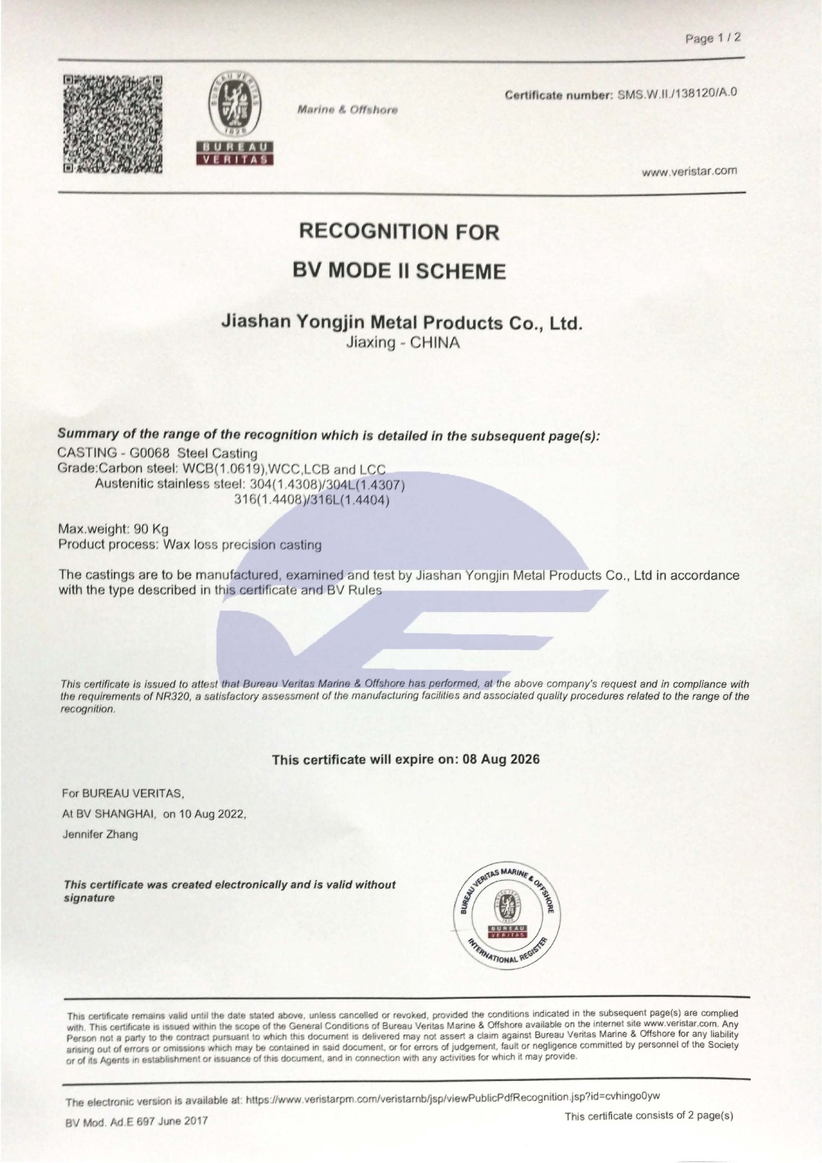 通過英國勞氏及法國BV工廠認(rèn)證