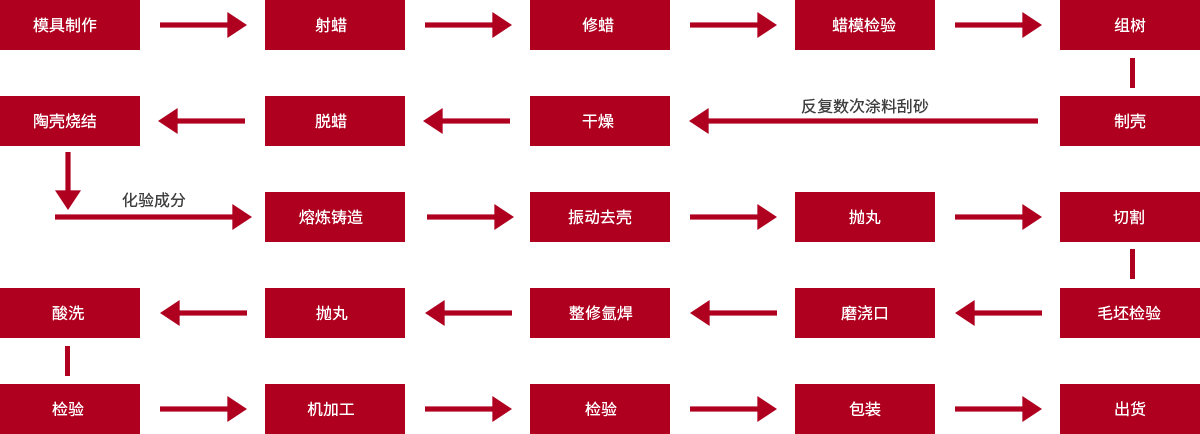 采用的硅溶膠熔模精密鑄造工藝,是一種少切削或無(wú)切削的鑄造工藝,是鑄造行業(yè)中的一項(xiàng)優(yōu)異的工藝技術(shù),它比國(guó)內(nèi)大多數(shù)廠家采用的水玻璃工藝、復(fù)合工藝更先進(jìn),所鑄造的鑄件表面更加光滑平整,其應(yīng)用非常廣泛。
